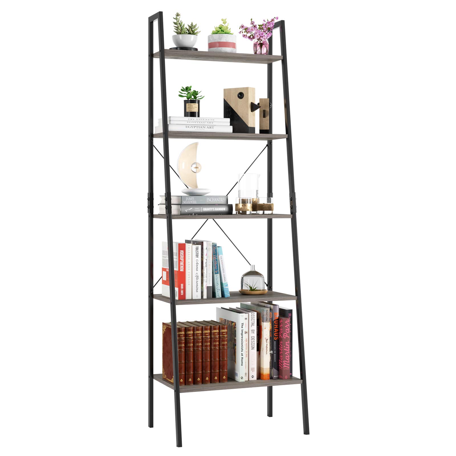Industrial Ladder Shelf 5 Tier Bookshelf Storage Rack Shelves