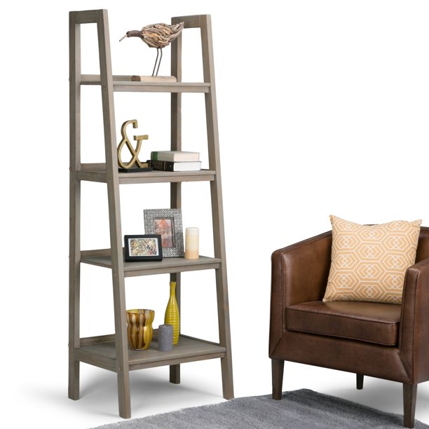 72 Inch Industrial Ladder Bookcase Grey Wash By Walker Edison