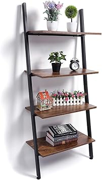 Walfront Industrial Ladder Shelf 4 Tiers Bookshelf Leaning