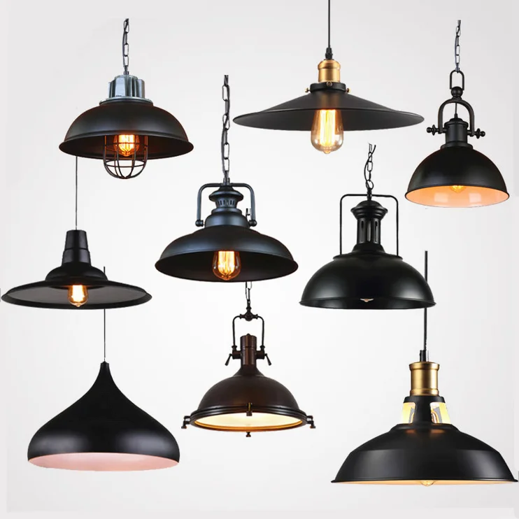 China Matt Black Industrial Metal Pendant Lamp For Restaurant