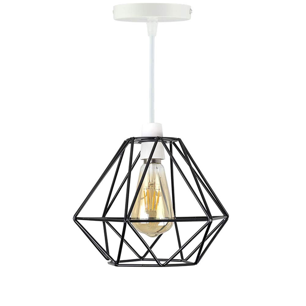 Modern Pendant Light Black Iron Hanging Cage Vintage Led Lamp