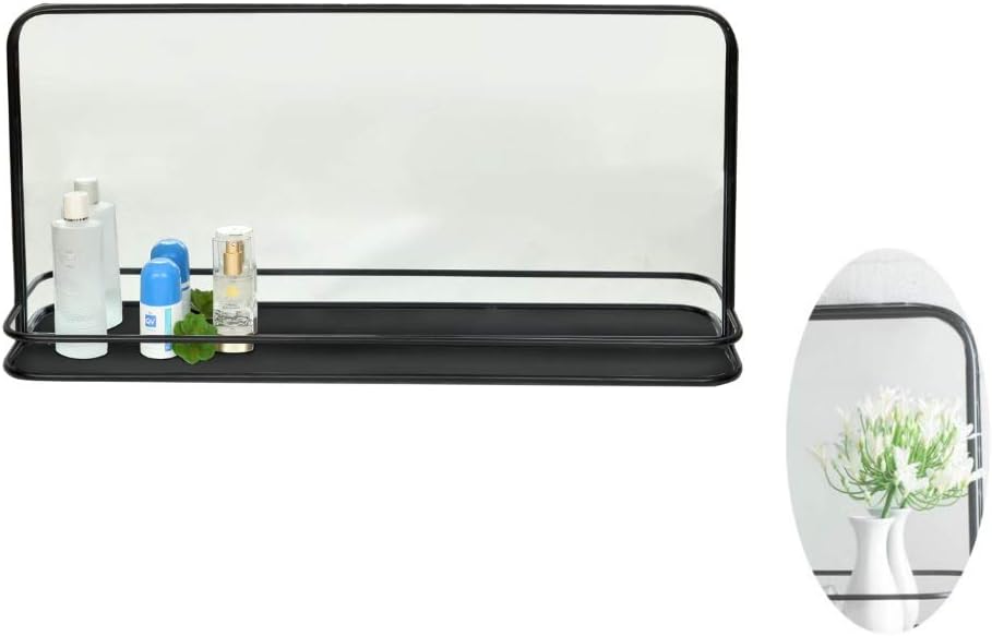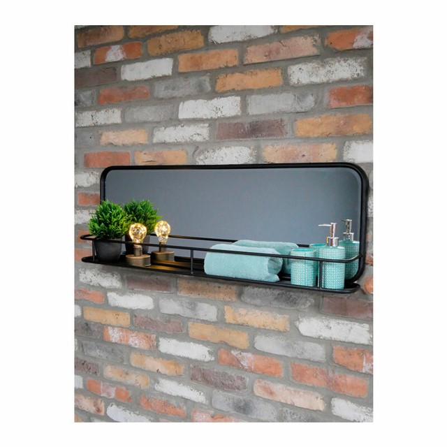 Industrial Style Black Mirror With Shelf Bathroom Mirror With