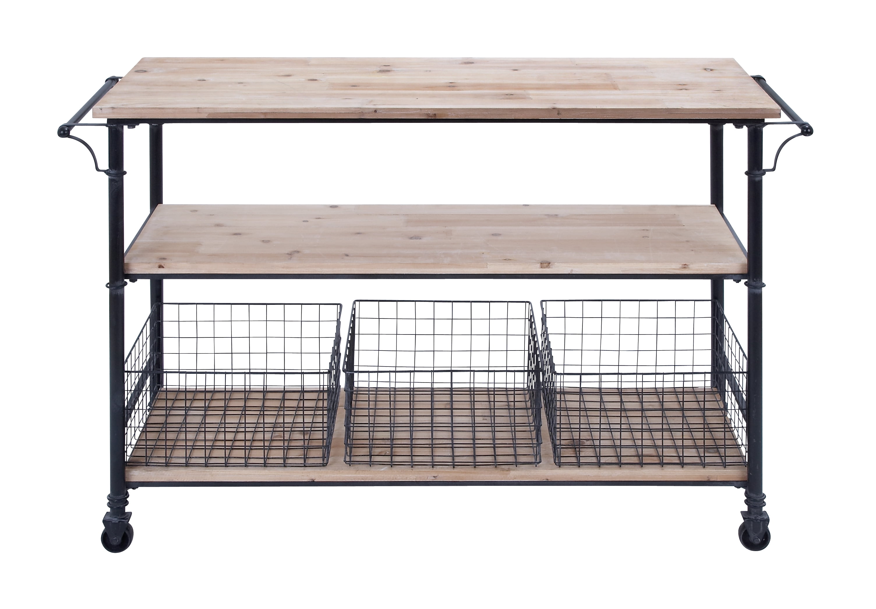 Deco 79 50203 Industrial Metal Wood Table Rolling Cart With