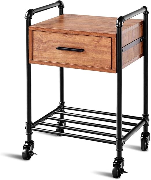 Joiscope Industrial Side Table Mobile Table Rolling Side Table