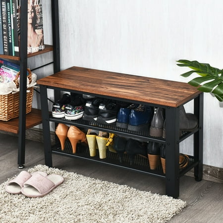 Costway 3 Tier Shoe Rack Industrial Shoe Bench With Storage