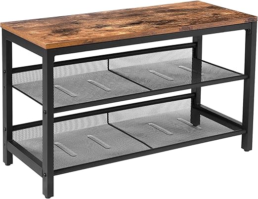 Vasagle Shoe Bench Industrial Shoe Rack With 2 Mesh Shelves