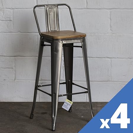 Marko Furniture Set Of 4 Metal Industrial Bar Stool Breakfast