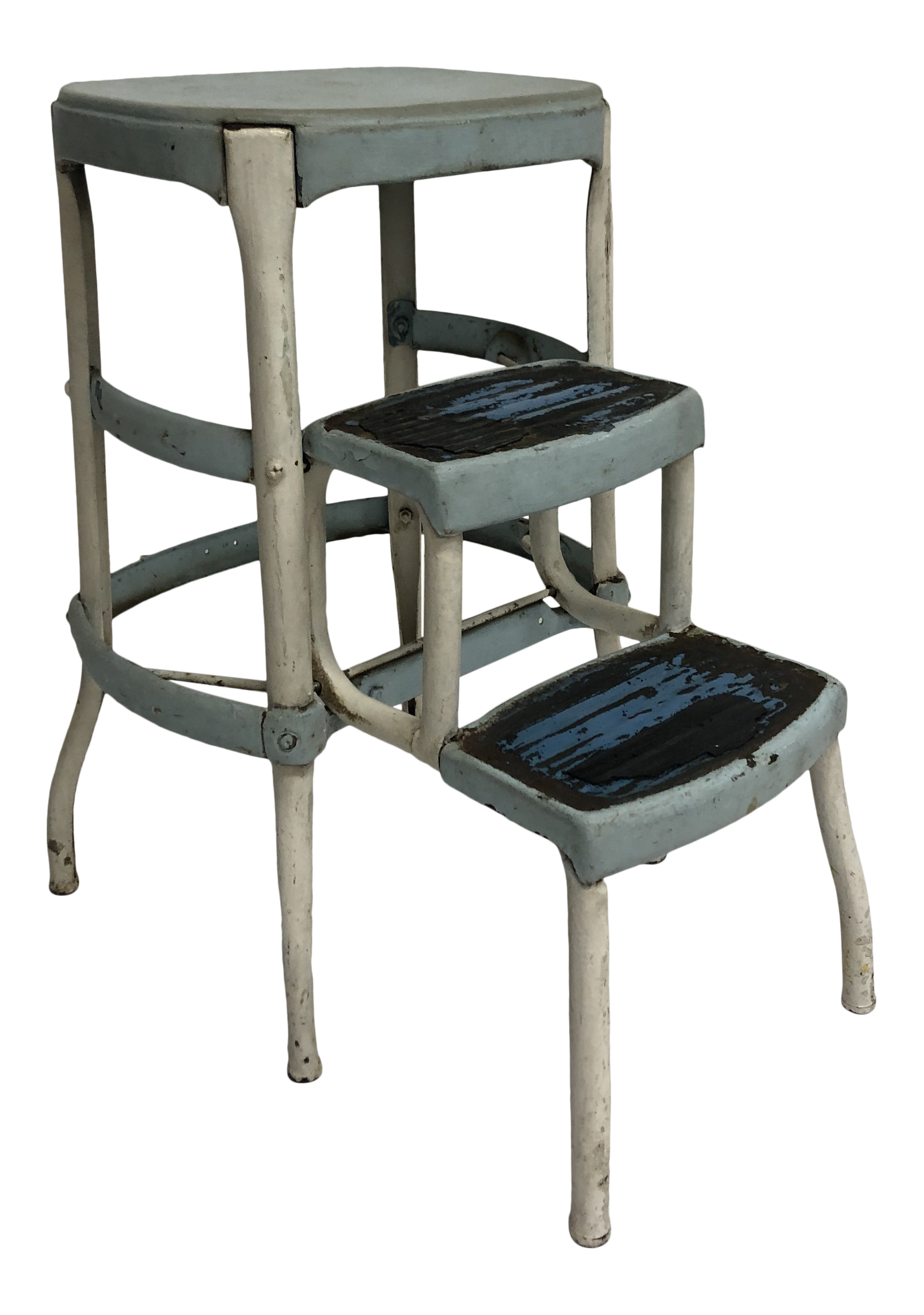 Vintage Cosco Industrial Metal Step Stool Chair Blue Mid Century