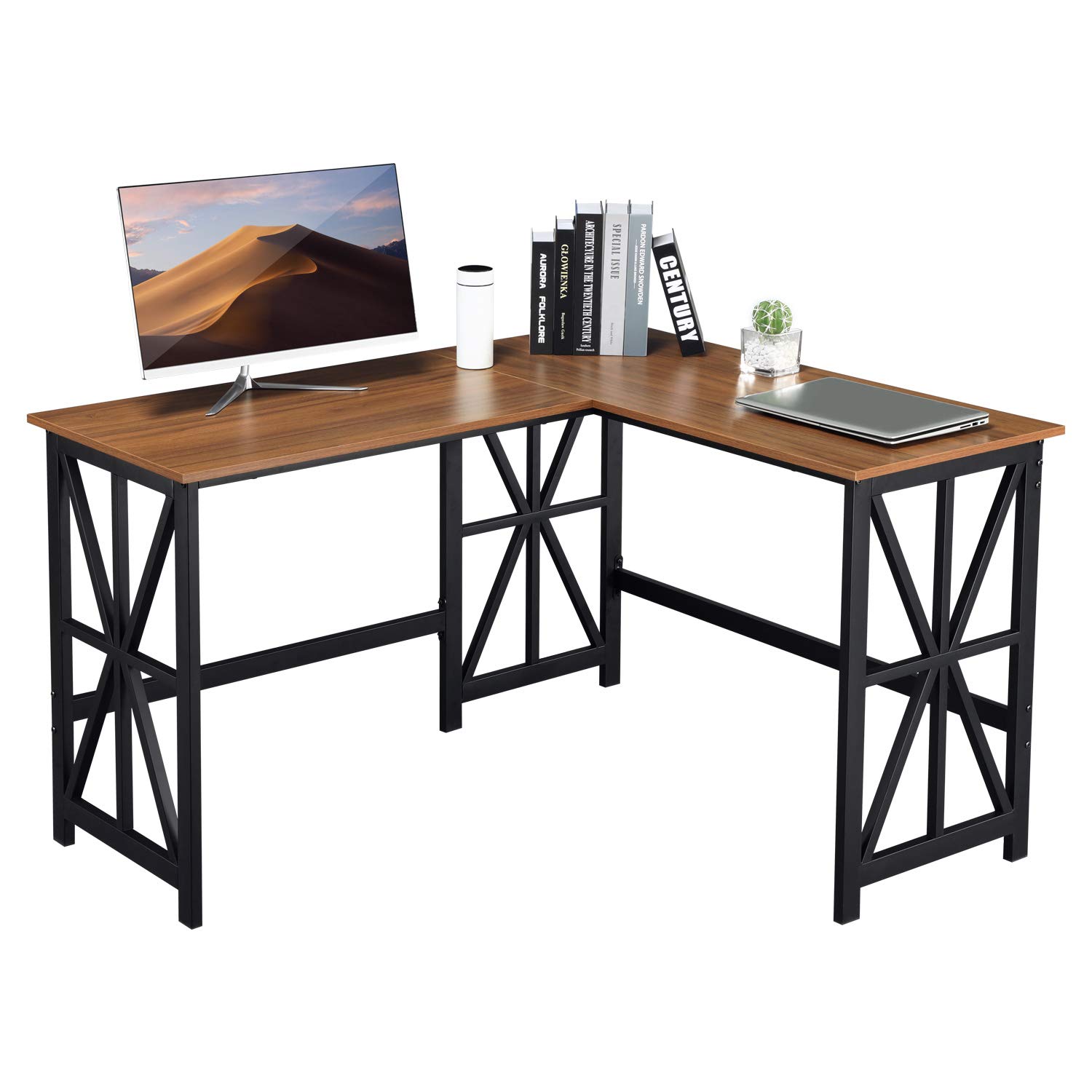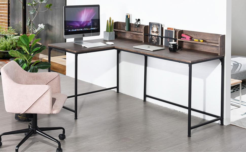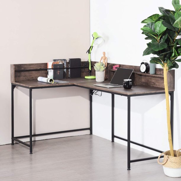 Homy Casa L Shaped Corner Desk Industrial Style Large Desktop