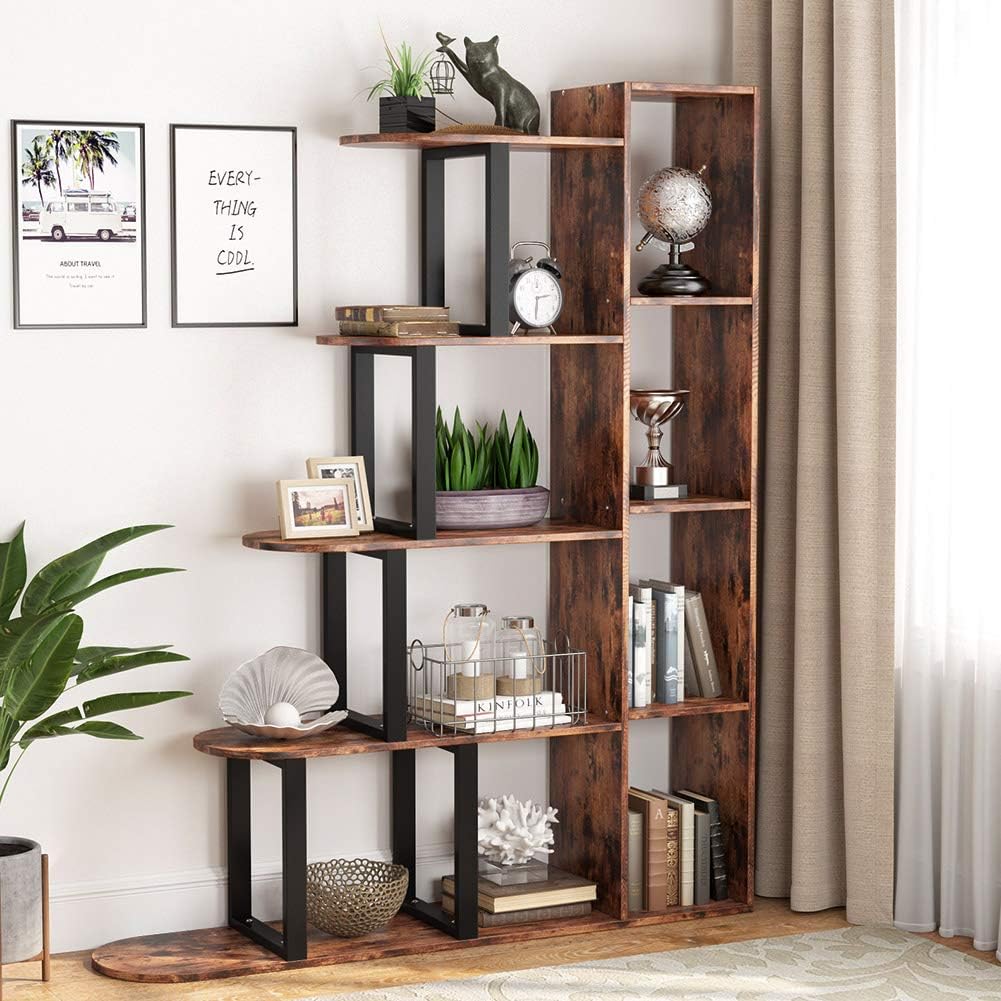 Hombazzar Industrial 6 Tiers Modern Ladder Shelf Bookcase Wood