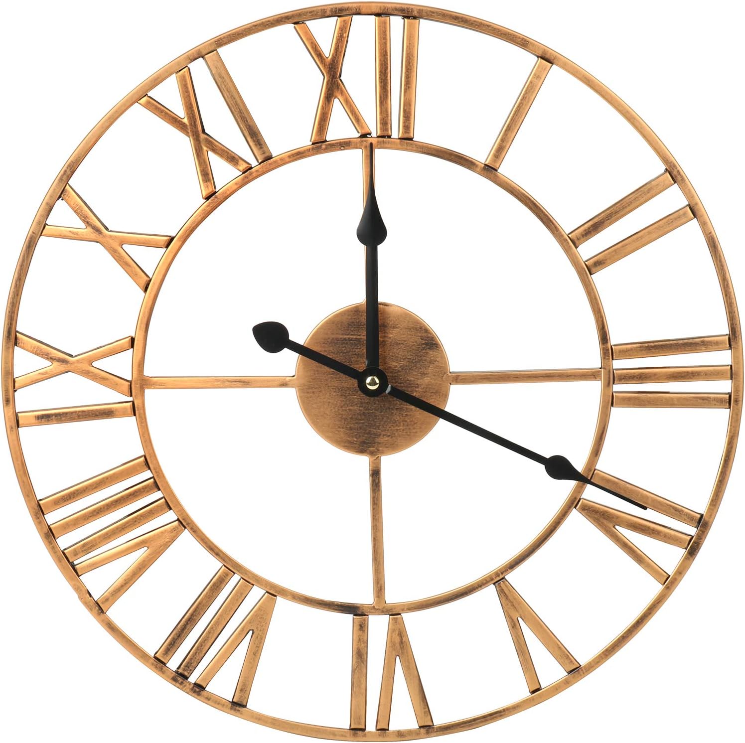 Amazon Com Evursua 24 Inch Large Metal Wall Clock Industrial Wall Art Decor Clocks Silent Battery Operated Solid Iron Skeleton Big Roman Numerals Antique Style Home Kitchen