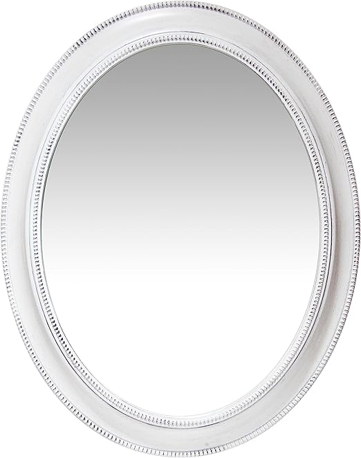 Amazon Com Infinity Instruments Sonore Oval White Wall Mirror Decorative 30 Inch Mirror Distressed White Antique Beaded Frame Easy To Hang Home Kitchen