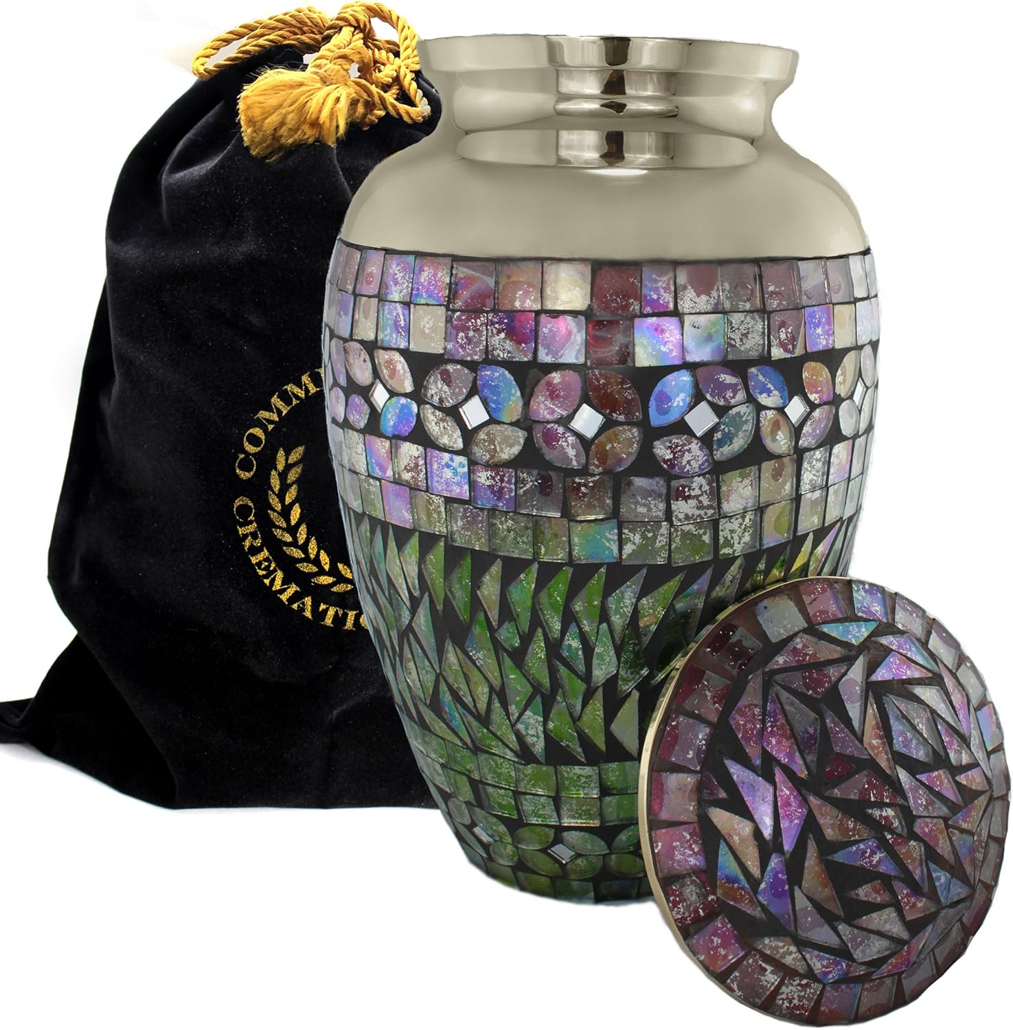 Iridescent Mosaic Cracked Glass Silver Burial Niche Columbarium
