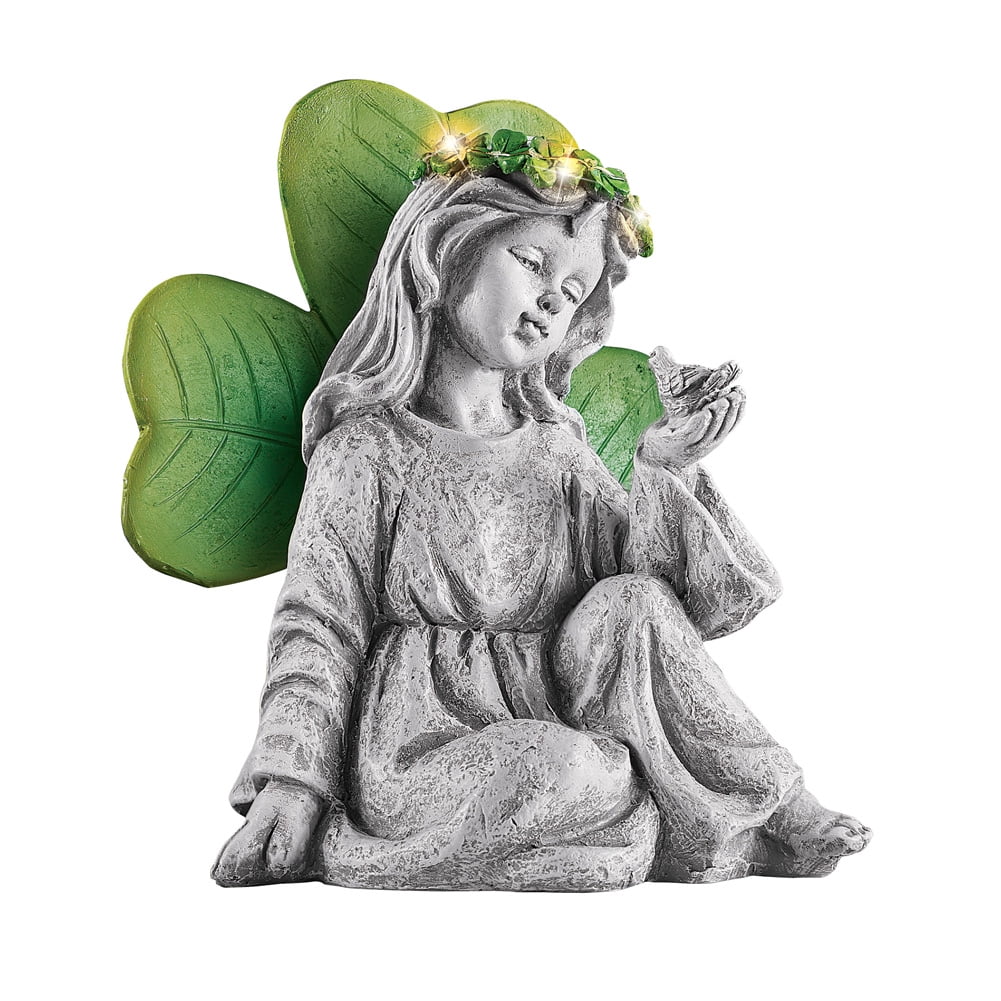 Solar Irish Angel And Shamrock Garden Stone Statue Collections Etc