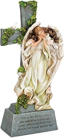 Roman Irish Memorial Angel Cross Garden Statue 14 Inch Height