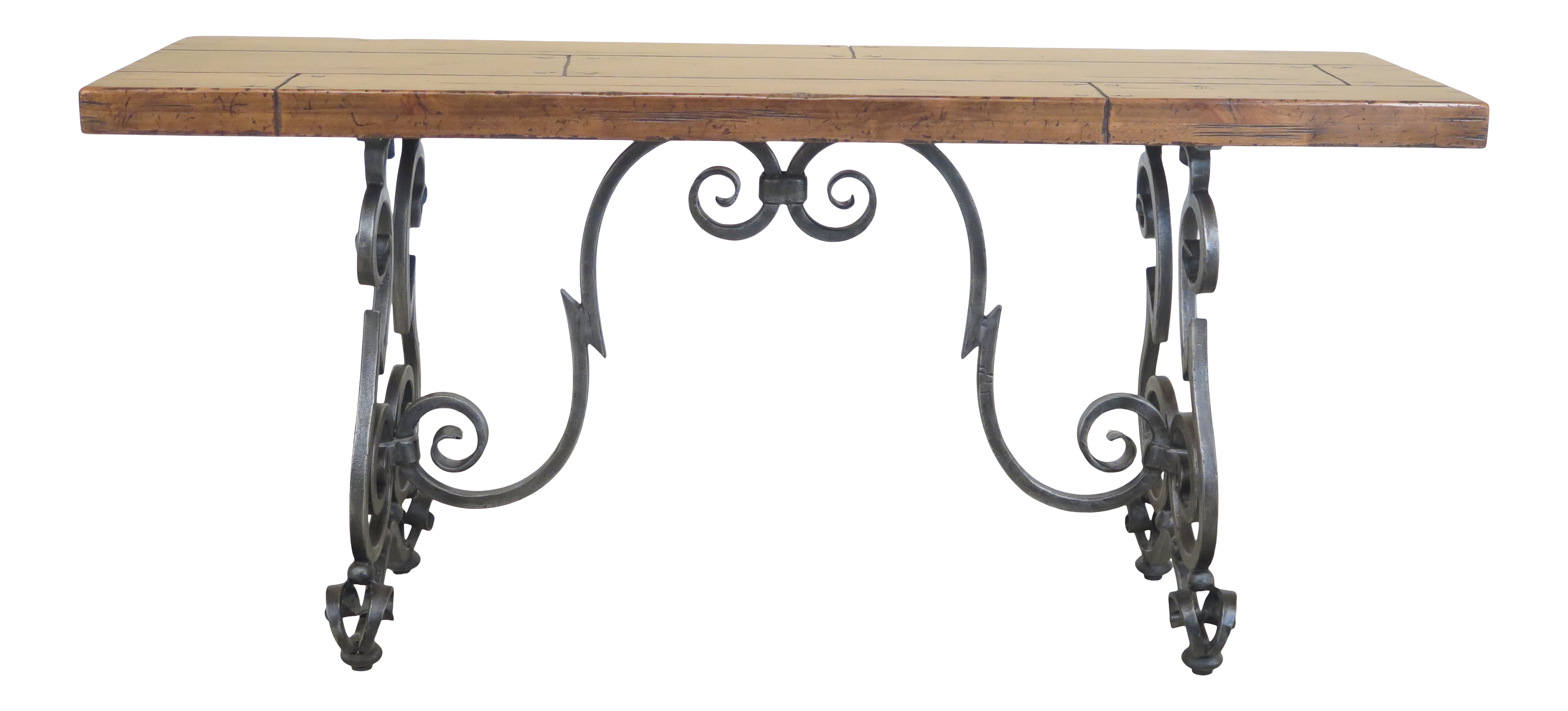 Westwern Chic Large Console Mesquite Wood Wrought Iron Base