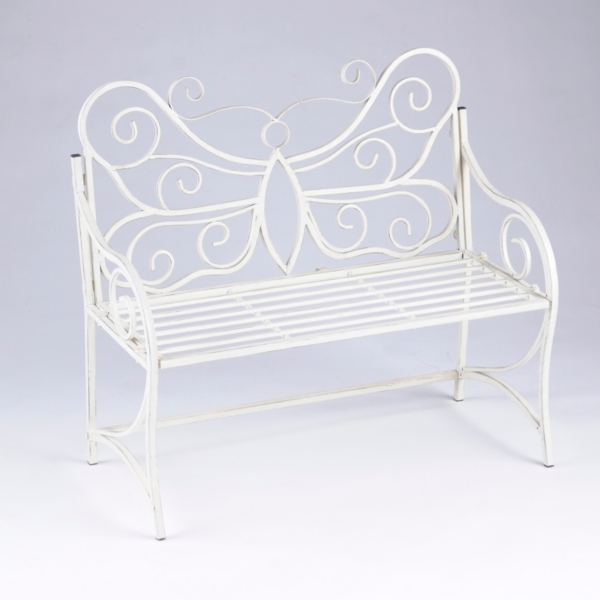 Wedding French Butterfly White Garden Bench Seat Outdoor Wrought