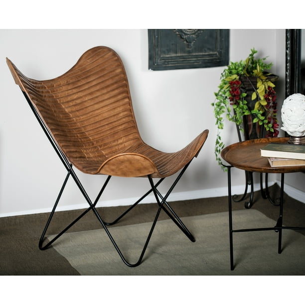 Decmode Modern 35 X 29 Inch Leather And Iron Butterfly Chair