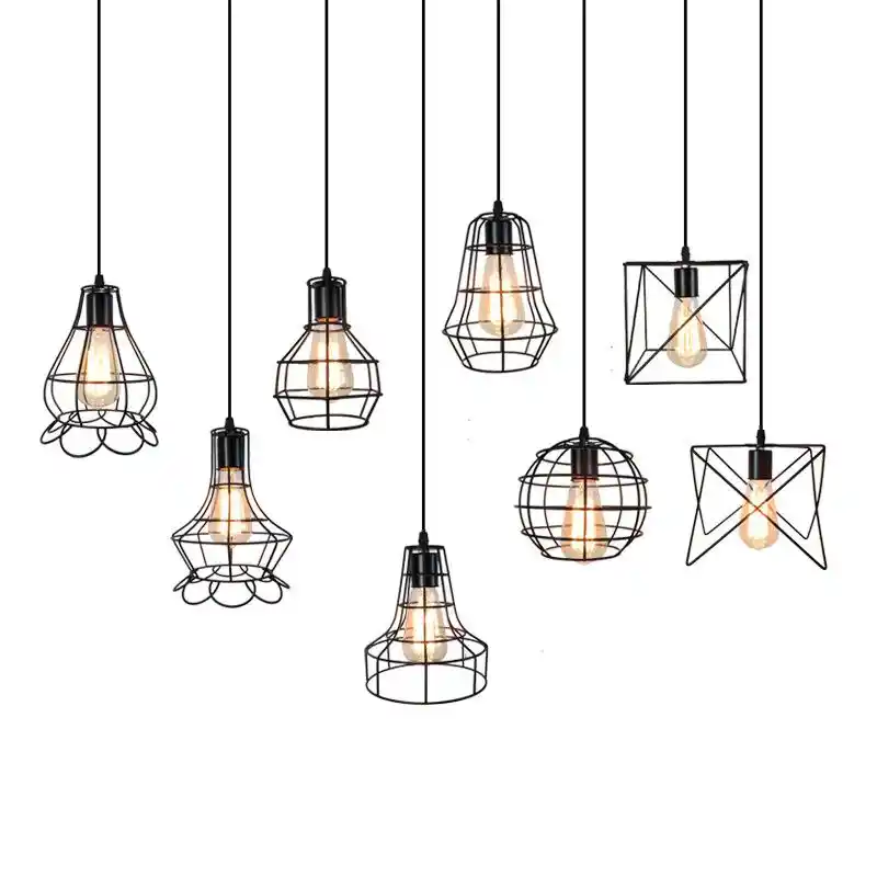 Nordic Iron Cage Pendant Lights Cafe Chandelier Vintage Lamp