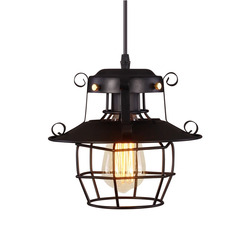 Ladiqi Industrial Pendant Light Vintage Wrought Iron Cage