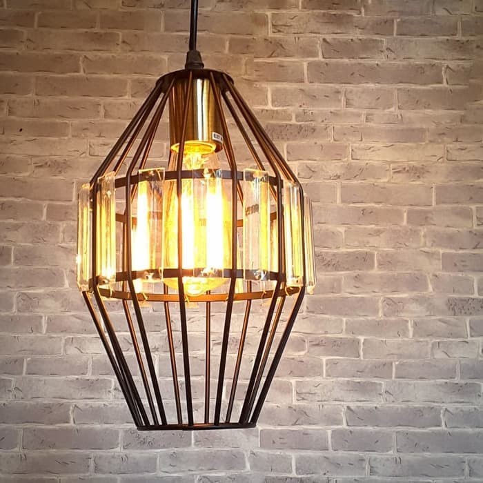 Jual Lampu Hias Gantung Kristal Teras Cafe Iron Cage Crystal