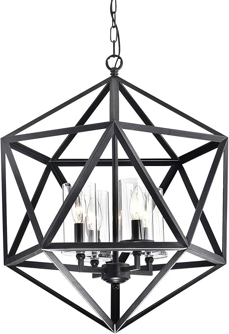 Amazon Com Edvivi 4 Light Geometric Iron Antique Black Glass
