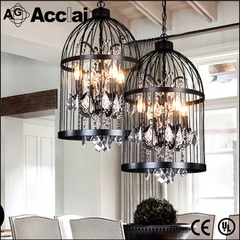Iron Cage Crystal Chandeliers Traditional Rustic Pendant Lights