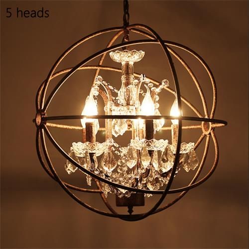 Retro Industrial Iron Cage Chandelier Lamp Crystal Pendant Lamp
