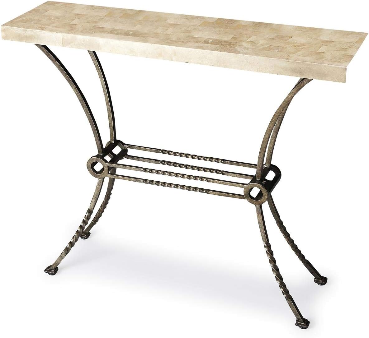 Server Console Wrought Iron Table W Fossil Stone Top Brookside