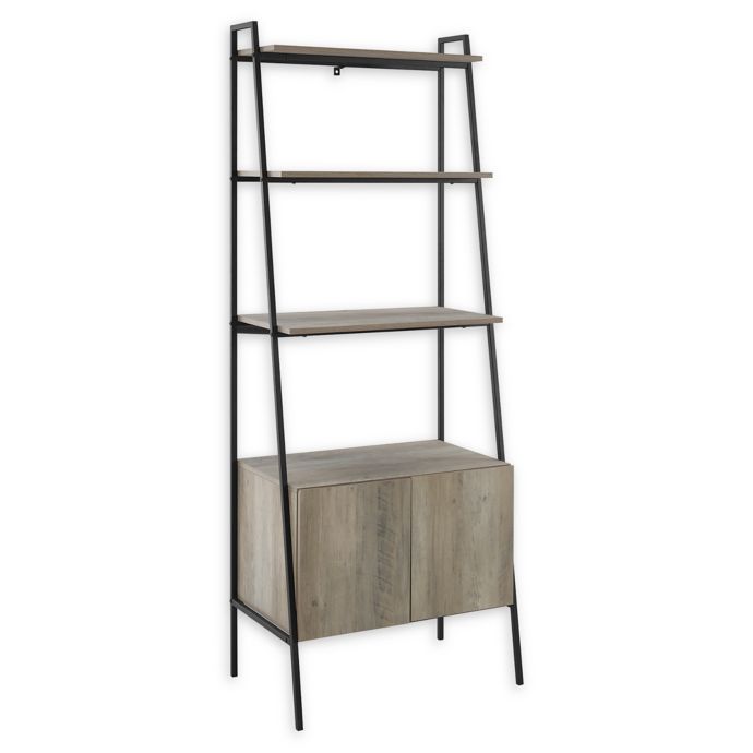 Braylen Industrial Loft Glass Oak Wood Iron Leaning Ladder Display