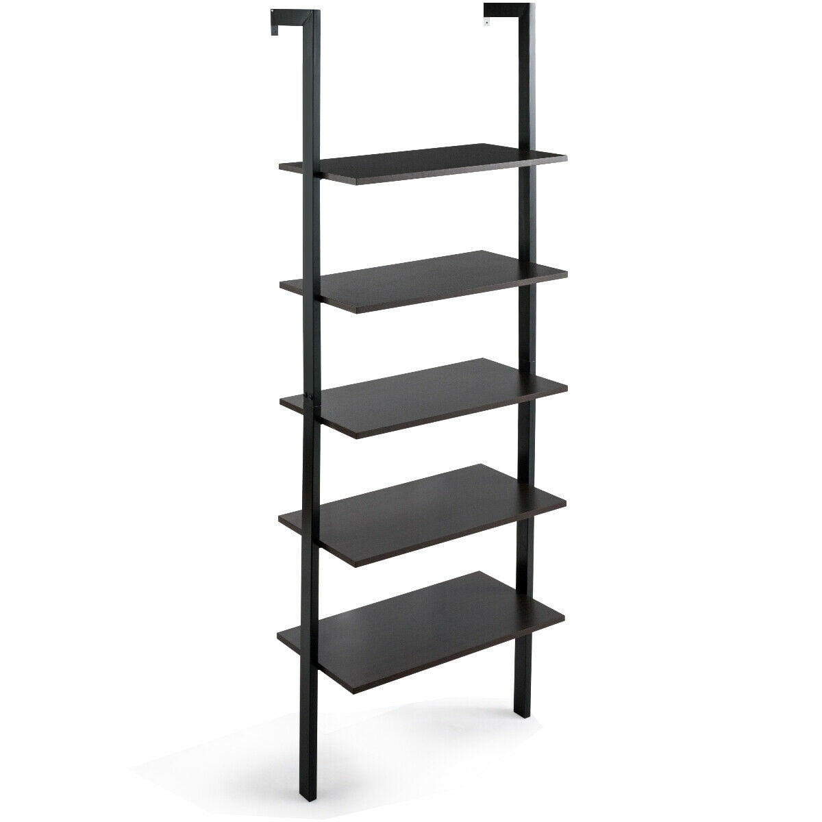 Gymax 5 Tier Ladder Shelf Wood Wall Mounted Bookshelf W Metal