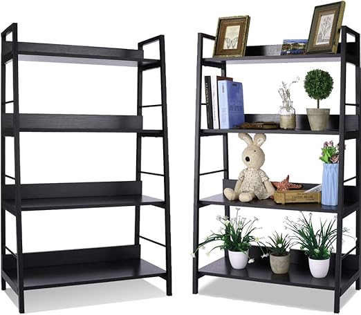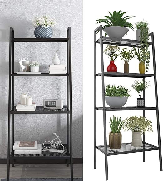 4 Tier Storage Ladder Bookcase Metal Display Leaning Shelf