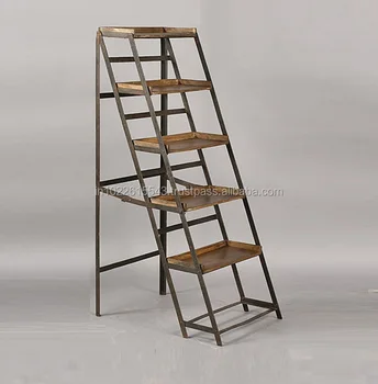 Vintage Metal Display Shelf Parts Iron Bookshelf With Ladder Buy