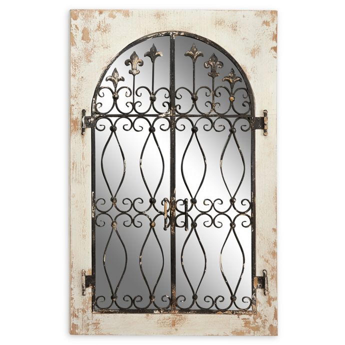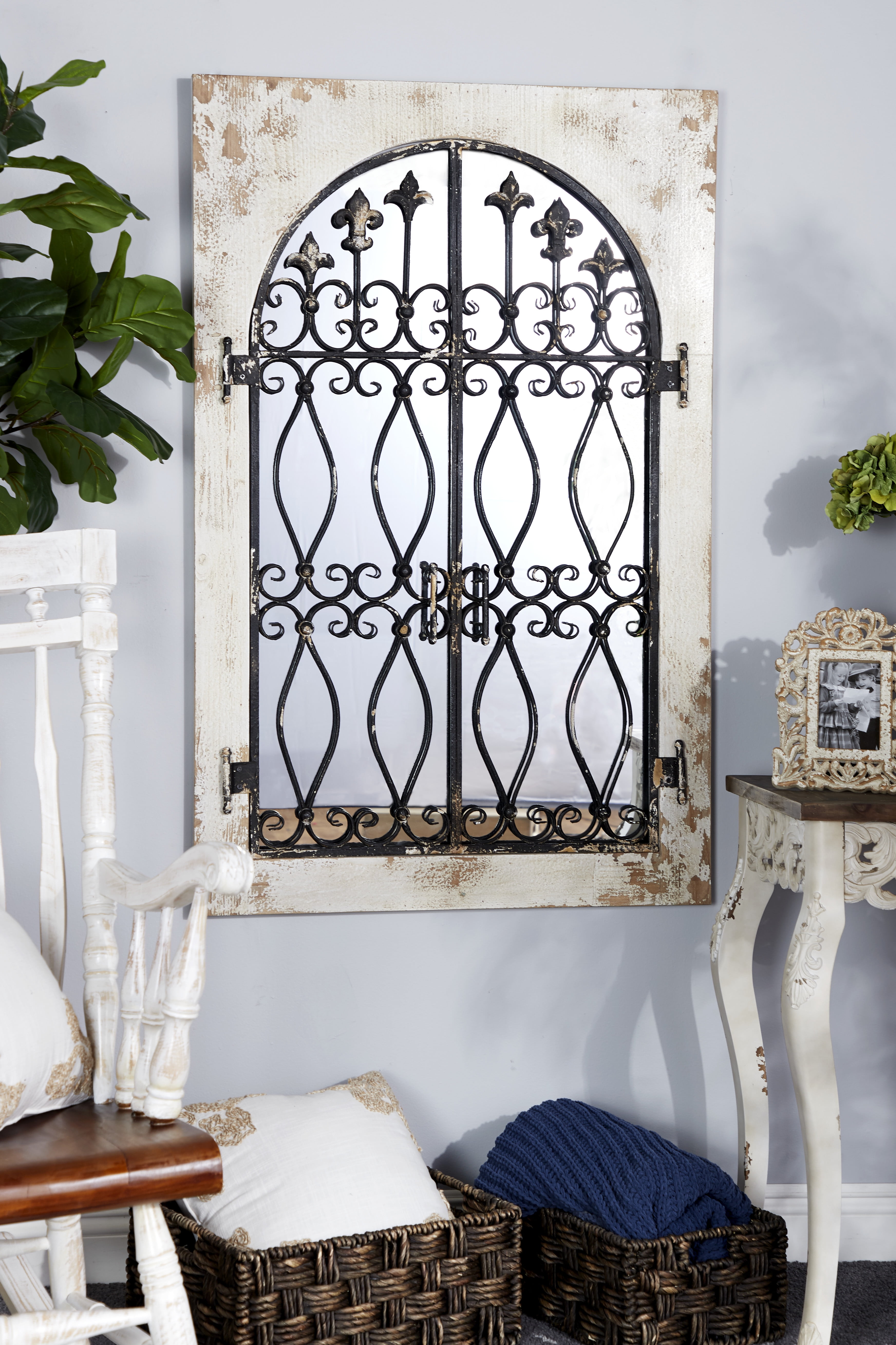 Litton Lane Rectangular Distressed White Wall Mirror With Gate
