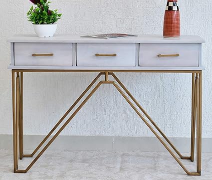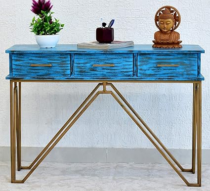 Samdecors Solid Mango Wood 3 Drawer Lamino Console Hall Table