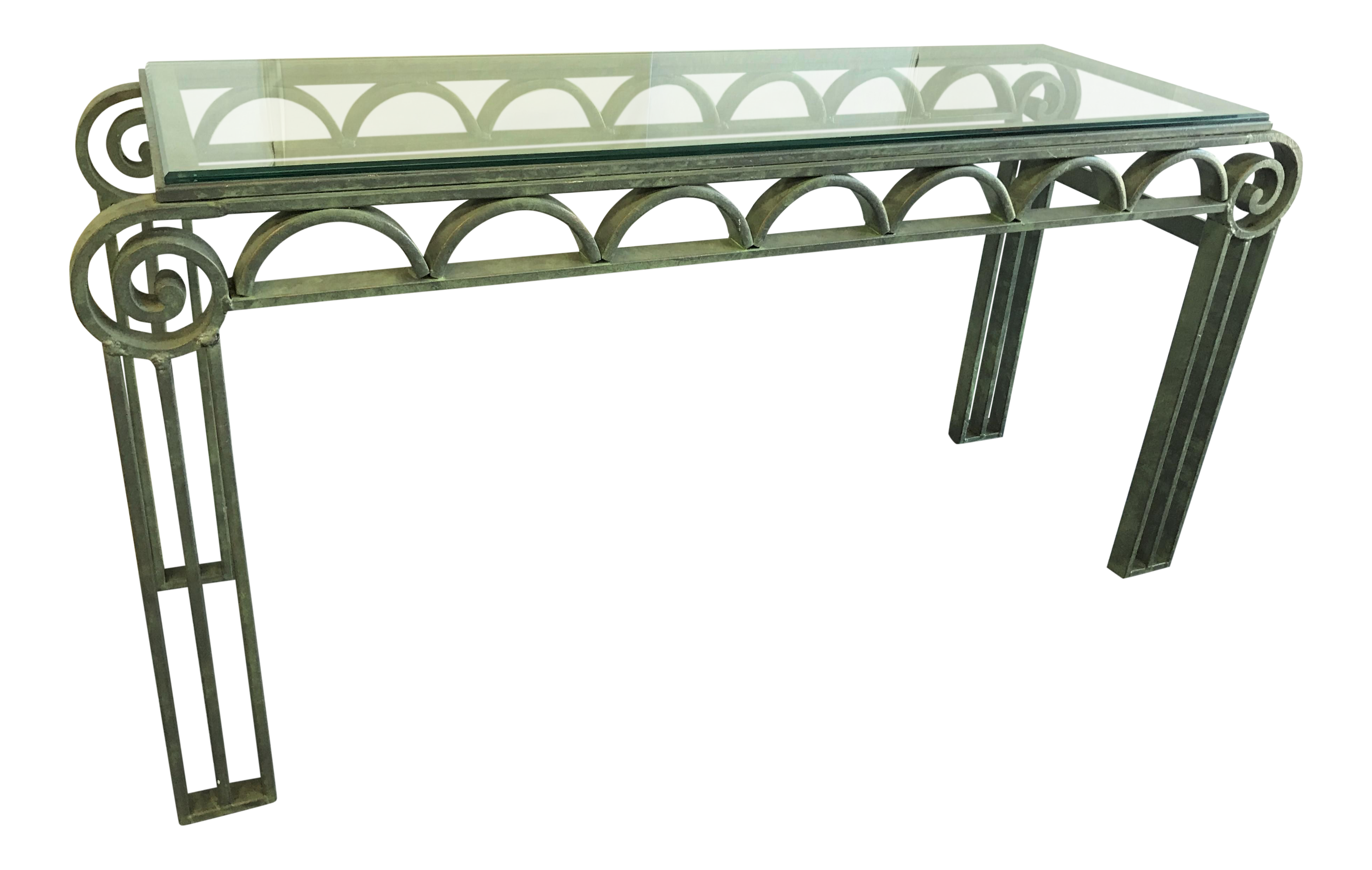 Italian Style Wrought Iron Scroll Base Glass Console Design