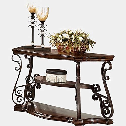 Amazon Com Wood Console Table With Metal Scrolling Frame