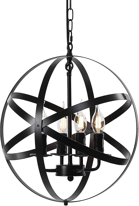 Metal Orb Chandelier Black Globe Sphere Modern Ceiling Lighting