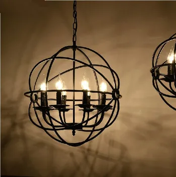 Industrial Vintage Iron Spherical Chandelier Creative Metal Globe