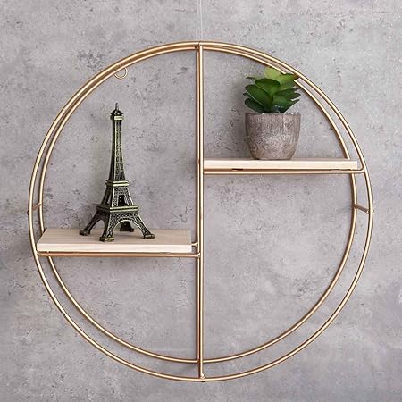 Ablerhome Decoration Small Circular Iron Wall Shelf Wooden Storage