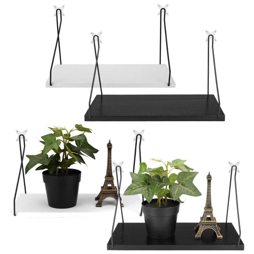 2pcs Wooden Iron Wall Shelf Wall Mounted Storage Rack Organization