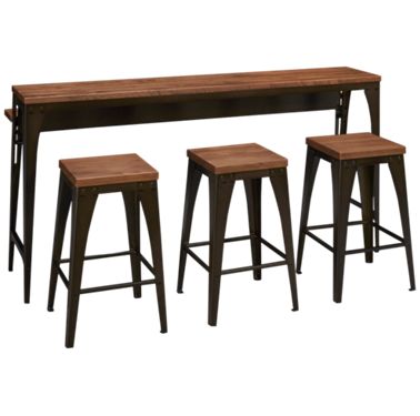 Five Piece Island Table With Stools Dining Set Natural Rustic Dining Sets By Buildcom