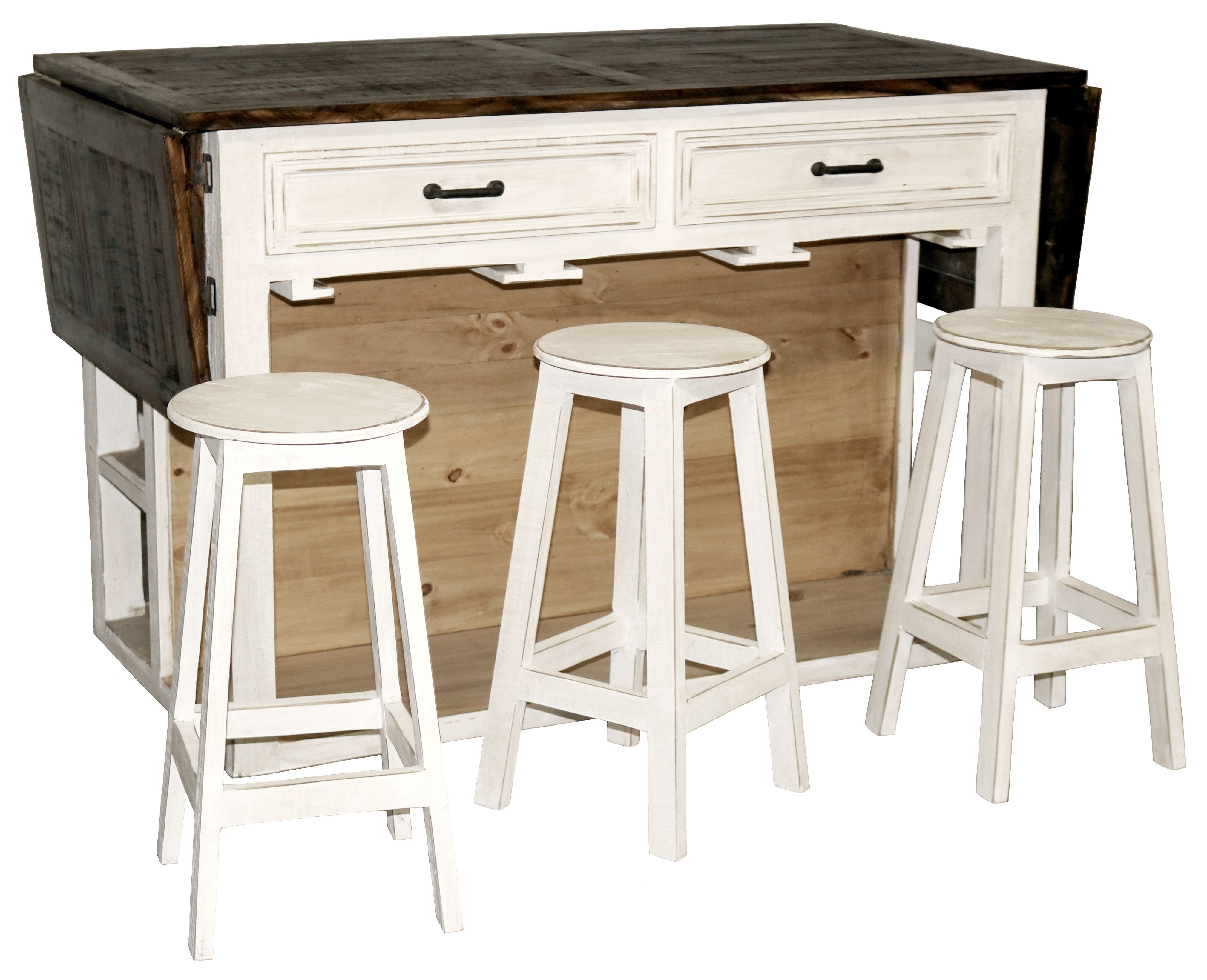 11 2 10315w 014 Rustic Weathered White Drop Leaf Island With 3