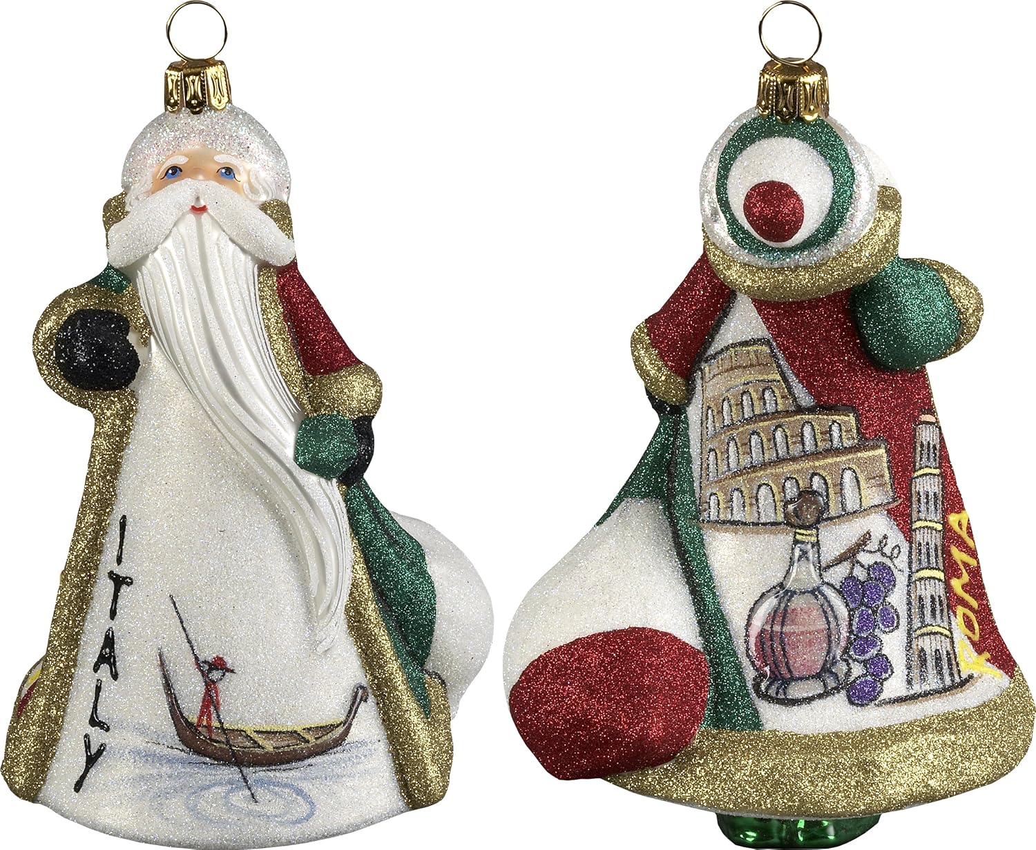 Amazon Com Italian Santa In Italy Polish Blown Glass Glitterazzi Christmas Ornament Home Kitchen