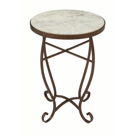 Decmode Traditional Scrolled Round Metal And Marble Accent Table