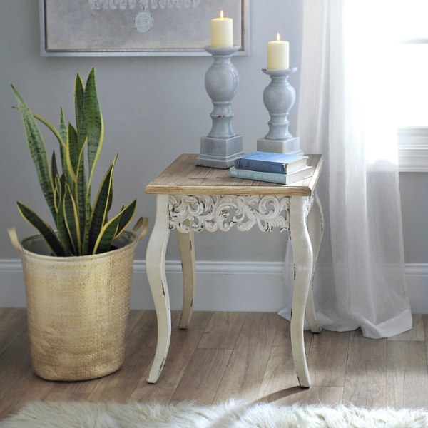 Litton Lane Antique Ivory Wood Accent Table 96199 The Home Depot