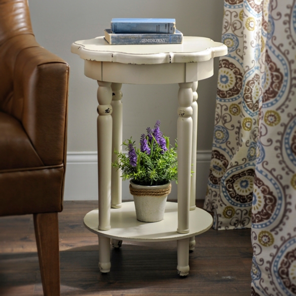 Amazon Com Fiana Scalloped Accent Table Ivory Kitchen Dining