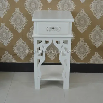 French Country Style Ivory Nightstand Unique Wooden Single Drawer