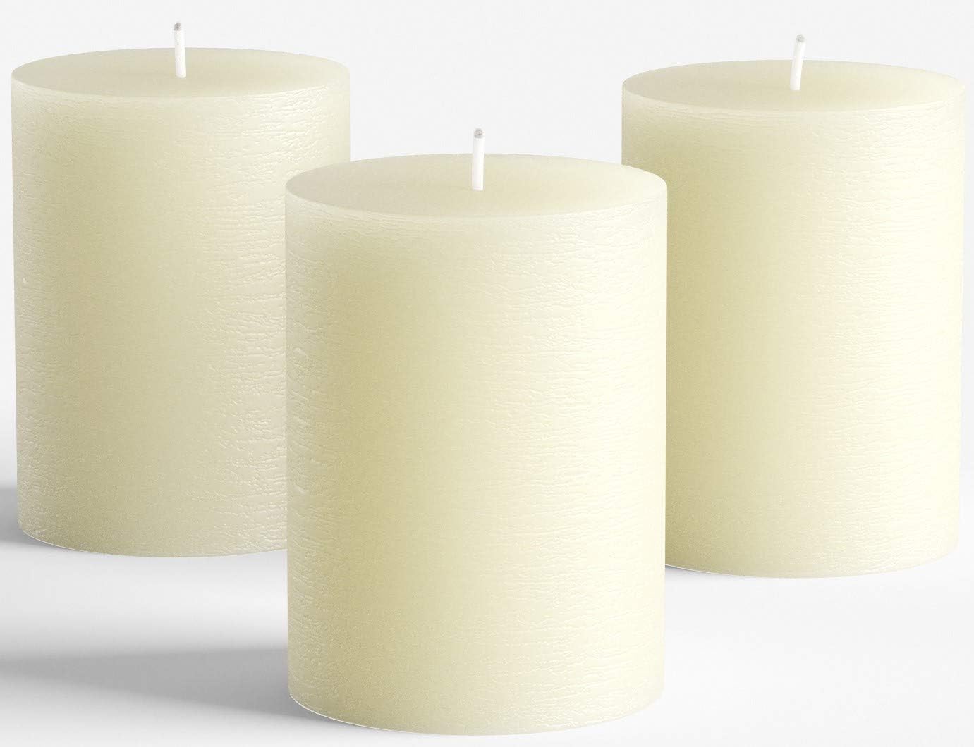 Amazon Com Set Of 3 Ivory Pillar Candles 3 X 4 Rustic Unscented