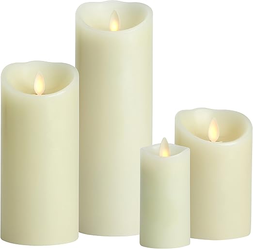 Luminara Led Living Flame Effect Set Of 4 Real Wax Ivory Pillar